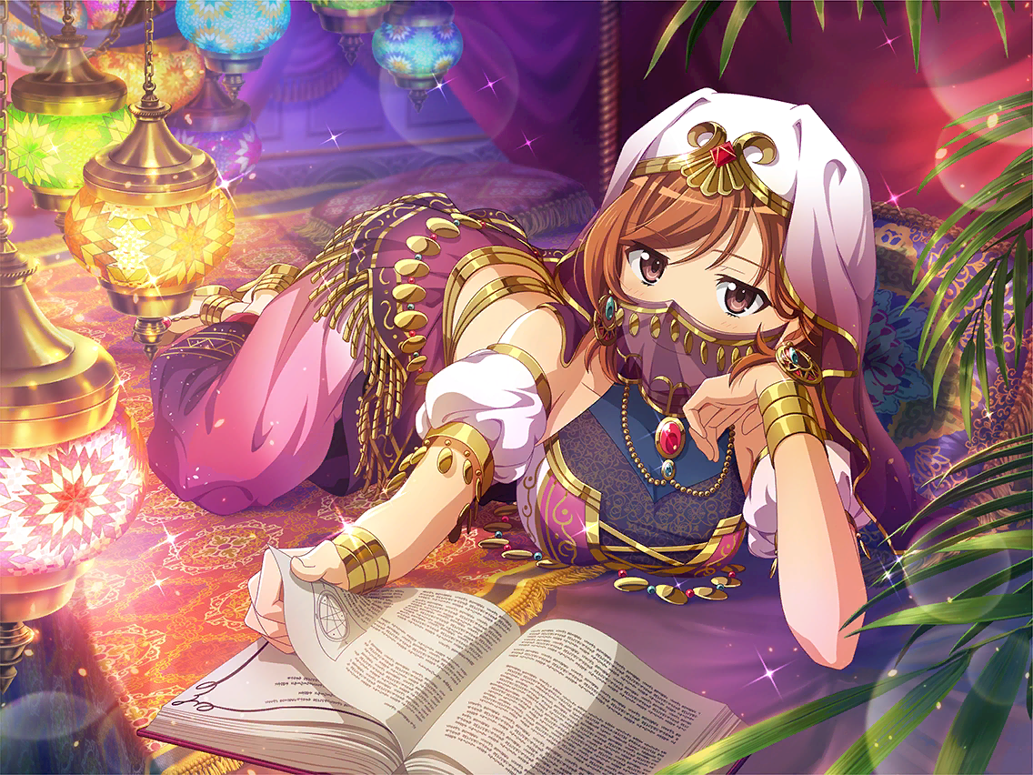 | home [오늘 밤도 근사한 이야기의 세계로 당신을 초대해 드리죠] [이건 오마르 알 누우만왕에 얽힌 이야기입니다. 다른 나라 왕 이야기이니 관심 있으시죠?] [이번에는 용감한 신드바드라는 선원의 7번에 걸친 항해 이야기를 해 드릴게요. 손에 땀을 쥐게 하는 모험담이랍니다] [마지막 이야기의 제목은 【자스민 왕자와 아몬드 공주의 상냥한 이야기】... 누구든 상냥함을 떠올리는 근사한 이야기예요] [천일야화]는 천하룻 밤의 이야기라는 의미인데, 대략 2년 3개월이래! 무척 긴 이야기야! 세헤라자데는 항상 재밌는 부분에서 이야기를 중단시켜. 나는 다음 이야기를 하고 싶어서 근질근질거리는데. 이 마스크 예쁘지. [페이스 베일]이라고 한대. 세헤라자데에게는 여동생이 있는데, 이번에는 등장하지 않는대. 히카리에게 딱 어울린다고 생각했는데. 카마르알자만라든가, 솀셀니하르라든가, 잰말놀이 같아서 어려워~. 시즈하에게 요령을 물어볼까. 아, 소도구 램프 발견! 문지르면 우메보시를 잔뜩 주는 요정이 나오면 좋을 텐데~. theater 이 의상을 입고 있으면 춤을 추고 싶어져. 룰루루~! 사막 나라가 무대니까 공원 모래밭에서 연기해 볼까? 히카리는 이야기 중간에 잠이 들었어... 더 열심히 해야겠어! 있잖아, 오리지널 이야기를 만들어 봤어. 누군가 들어줘~! 텐도와 클로는 무대에서도 정말 호흡이 딱 맞는다니까~. 유유코, 모두가 집중해서 듣게 되는 이야기의 요령을 가르쳐줘! [마침 저기 걷고 있는 사람을 이야기의 주인공으로 해요] [어떤 이야기가 듣고 싶나요? 원하시는 대로 해 드리죠] |