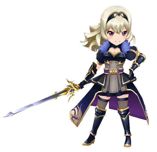 | 흑사자 나라의 외로운 한 마리 늑대. 검 실력은 나라에서 제일로 칭송받는 기사. 호수에서 홀로 단련하는 그녀 역시 출전 통지를 받았다. 작품 「이별의 전기」에서 |