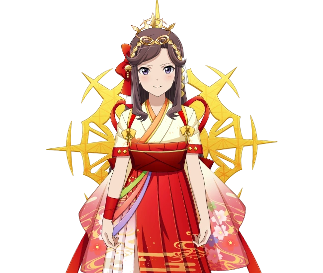 | 아마테라스는 모든 어둠을 내쫓는 태양신이며, 타카마가하라의 백성을 다스리는 최고신. 그런 그녀는, 백성과 가족 사이에서 괴로워하고 있었다. [오픈 캠퍼스 기념 공연]에서. |
