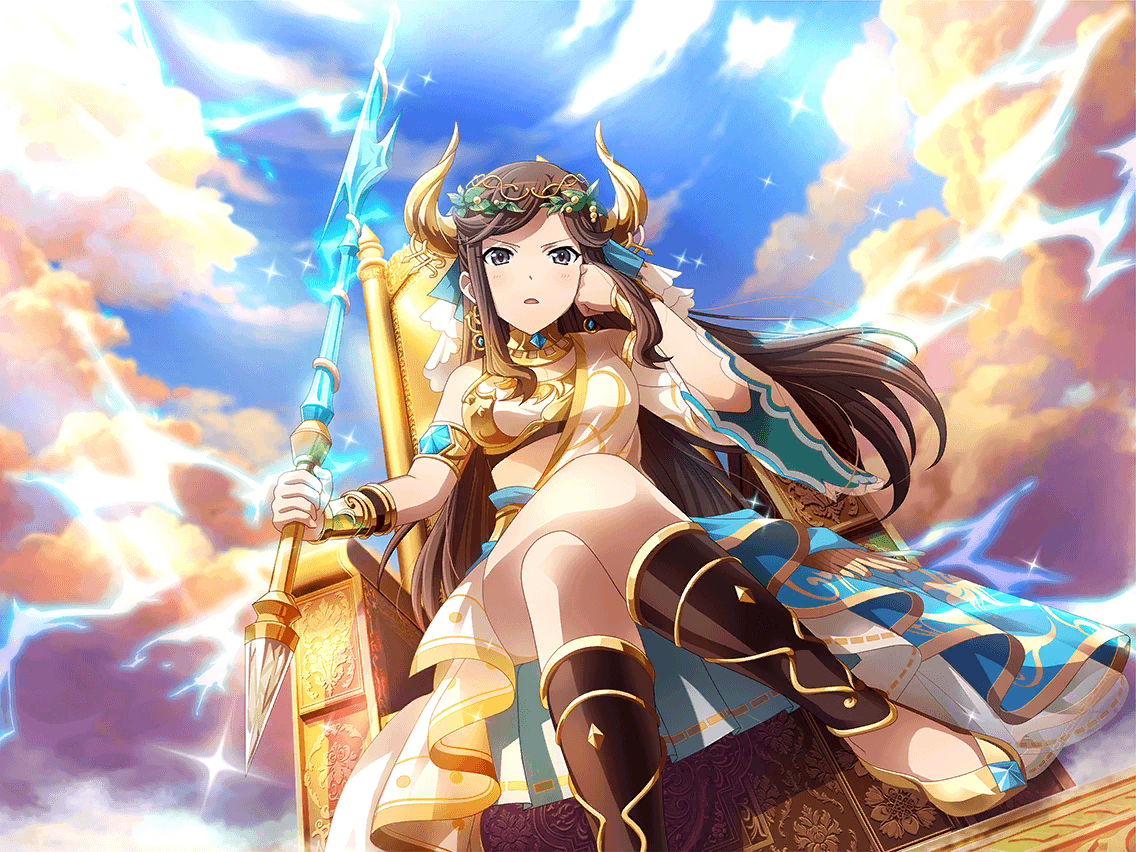 | 그리스 신들을 통솔하는 최고신. 많은 연애를 한 신으로서도 유명하며 그 상대에는 신뿐만이 아니라 인간도 포함되었다. 하지만 경박하지 않으며 모든 연애에 있어 진지하게 임하는 정열을 가지고 있다. 작품[배신의 크레타]에서 |