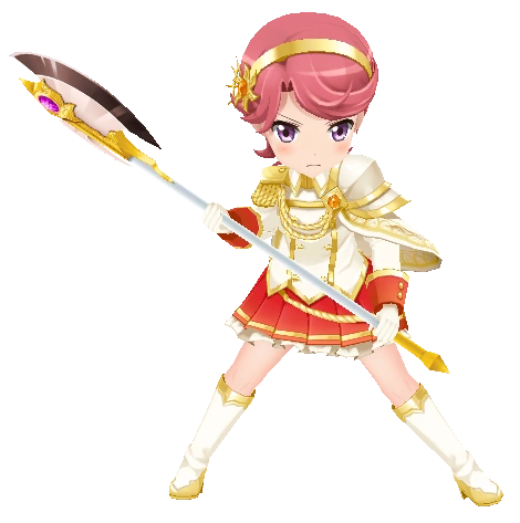 | 전방에서 싸우는 것을 즐기며 늘 훈련에 매진하는 태양 나라의 기사. 그런 그녀의 최대 라이벌에게 드디어 도전할 때가 왔다. 작품 「이별의 전기」에서 |
