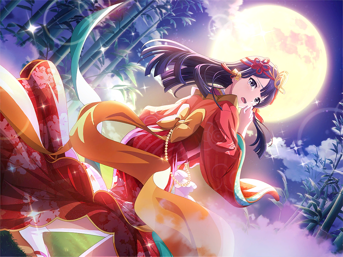 | 빛나는 대나무에서 태어난 참으로 아름다운 여성. 그 정체는 달의 궁전에서 죄를 저지른 공주님으로 그녀는 어쩔 수 없이 달로 돌아가게 되는 것이었다. 작품 [타케토리 이야기]에서 |