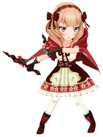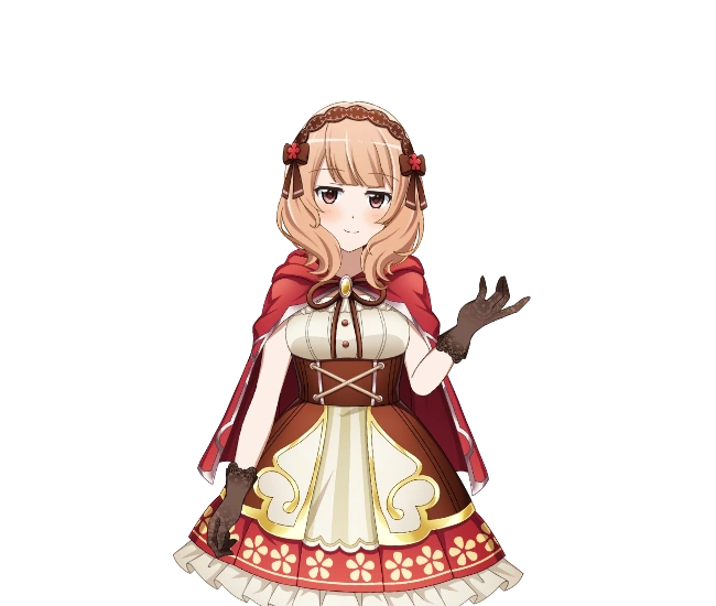 | 빨간 망토가 무척 잘 어울리는 귀여운 소녀. 아프신 할머니를 위해 케이크와 와인을 가져다 드리게 되었는데, 심부름 가는 길에 교활한 늑대와 만나고 만다. 작품 [동화・빨간 망토]에서 |