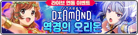 Starry Diamond 역경의 오리온 플라네타리움 아래에서 별들의 신화를 떠올리는 엘과 앤드류. 별에서 이야기를 만들어 낸 선조들처럼, 무대소녀들도 별 아래에서 레뷰를 통해 경쟁하고, 때로는 서로 돕는 가운데, 새로운 반짝임――새로운 이야기를 만들어 낼 수 있지 않을까. 그렇게 생각한 엘이 레뷰에 초대한 것은 세이쇼 음악학교의 카렌과 히카리, 그리고 시크펠트 음악학원의 아키라였다. 'Starry Diamond'――오리온자리의 레뷰, 개연. |