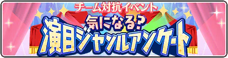 팀 대항 이벤트 궁금해? 작품 장르 앙케이트 (글로벌 서버 미실장) 세이쇼 음악학교 99기 배우육성과 B반으로부터 '앞으로 연기하고 싶은 작품의 장르는?'이라는 앙케이트가 실시된다. 응답이 많았던 장르가 앞으로 공연할 작품으로 검토될 예정이라고 한다. 마야, 클로딘, 후타바, 히카리는 과거 자신이 주역을 맡았던 작품과 같은 장르를 다시 연기하고 싶다고 말한다. 앙케이트의 결과는 과연……? |