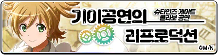 [슈타인즈 게이트 콜라보 공연] 기이 공연의 리프로덕션 세이쇼 음악학교 특별공연 '하늘의 계단'의 연습 중 나타난 것은……광기의 매드 사이언티스트 호오인 쿄우마!? 일동은 당황하면서도 '비극을 해피엔딩으로'라고 씩씩거리는 오카베 린타로에게 휘말려……. 무대소녀와 매드 사이언티스트, 세계선을 넘은 만남이 주는 기이한 협연의 막이 오른다―― |