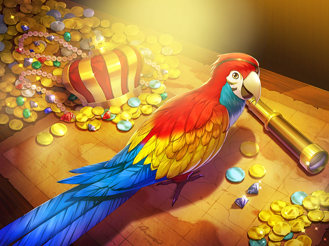 프론티어 예술학교의 아루루와 미소라가 만든 작품 「캡틴 트윈즈」에 등장하는 앵무새 「마릴린」. 드넓은 바다를 종횡무진 누비는 선장들의 파트너 캐릭터. |