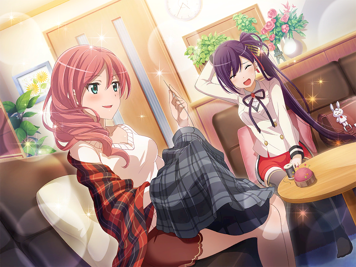 「메이팡은 의외로 그런 점이 있지?」 메이팡을 놀리는 야치요. 평소에는 발끈하는 메이팡도 오늘만은 억지웃음을 지을 수밖에 없다. 교복 차림으로 권법 자세를 선보이다가 스커트가 뜯어져 야치요에게 수선을 부탁했기 때문이다. |
