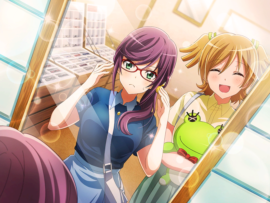 「어, 어때...? 평소보다 너무 화려하지 않아?」 나나와 함께 외출 중인 준나는 이번 기회에 새 안경을 사기로 했다. 나나가 추천해 줘서 써 본 안경은 프레임 색상이 조금 화려하다. 멋있어 보이기도 하지만 자신에게 어울리는지 알쏭달쏭하다. |