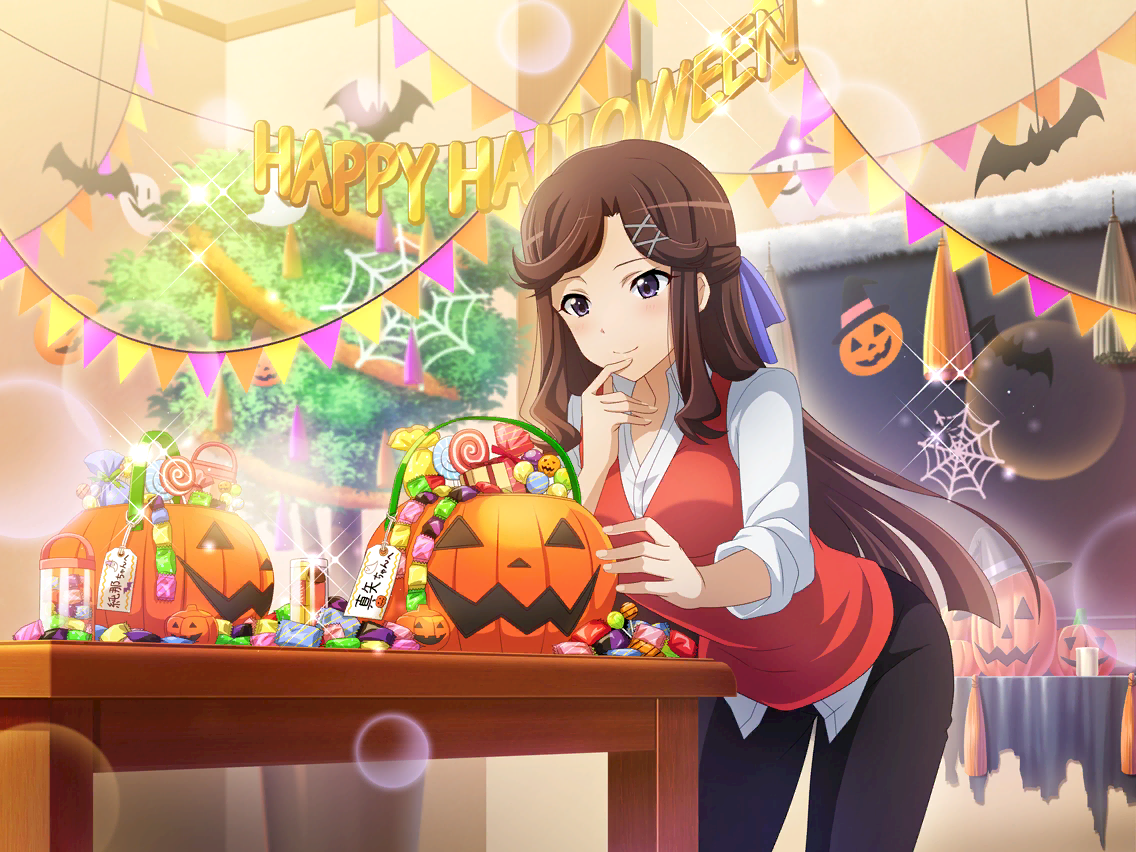 오늘은 세이코우칸에서 할로윈 파티. 책상 위의 잭오랜턴에는 과자가 넘치도록 담겨 있다. 거기에는 「마야에게」라는 메시지도 붙어 있다. 친구를 아끼는 나나가 준비했나... 하고 생각하며 마야의 표정은 자연스럽게 부드러워졌다. |