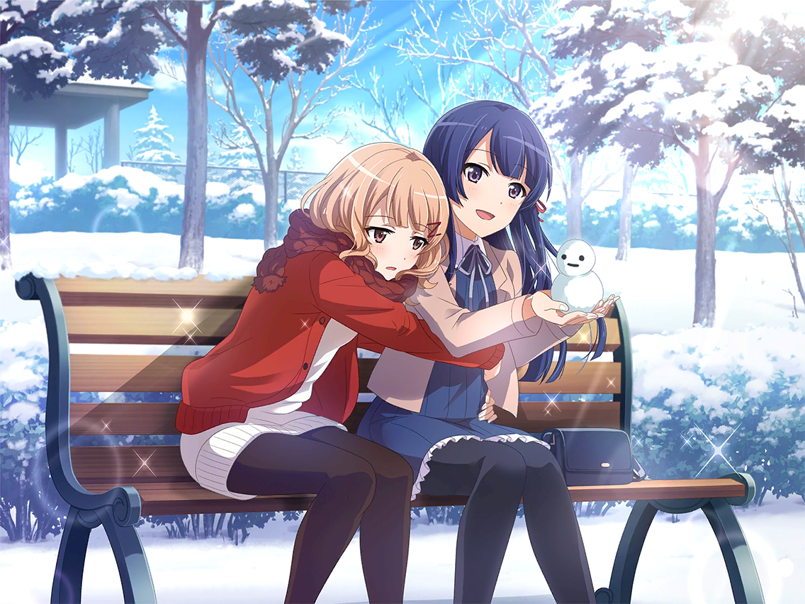 「저기 봐, 유유코. 귀여운 눈사람이야.」 눈 내린 겨울날, 타마오는 방에 틀어박힌 유유코를 밖으로 데리고 나왔다. 공원을 지나가는데 벤치 위에 누군가가 만든 작은 눈사람이 있었다. 너무 귀여우니 잠시 쉬었다 가자며 타마오는 벤치에 앉았지만, 추위를 많이 타는 유유코는 눈사람은 본체만체하고 타마오에게 착 달라붙었다. |