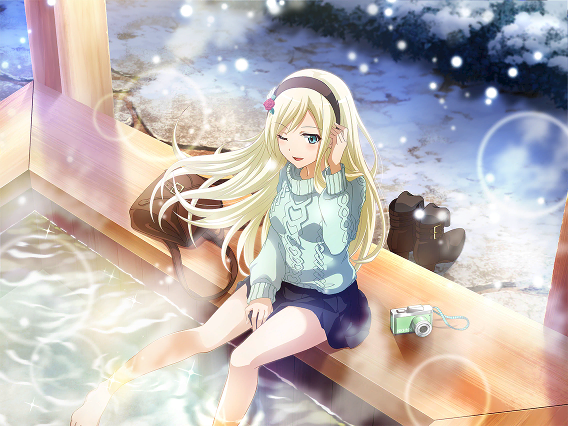 [발끝이 따뜻해지면 몸 전체가 따끈따끈...] 연극과의 모두와 여행을 온 후미는 족욕탕을 발견해서 처음으로 도전. 발끝만 탕에 담갔지만 왠지 몸 전체가 따뜻해지는 신기한 기분. 천천히 퍼져 나가는 따뜻함, 홍차와 닮았을지도. |