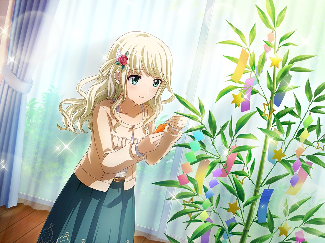 기숙사의 거실에 꾸며진 칠석 장식. [모두 어떤 소원을 빌었으려나?] 다채로운 색상의 탄자쿠에 각자의 소원이 담겨 흔들린다. 시오리는 살짝 자신의 탄자쿠를 묶었다. [모두의 바람이, 꼭 이루어지기를] |