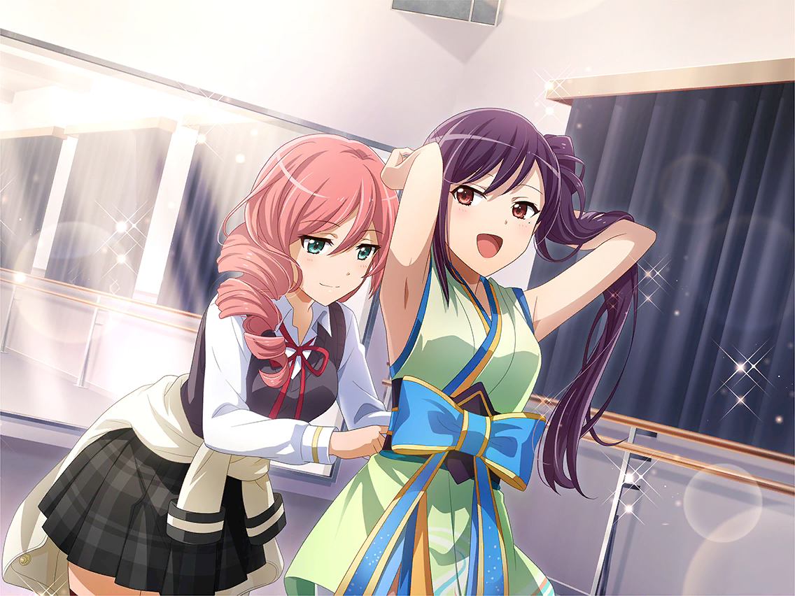[뒤를 잠가주실래요?] [응, 알았어~, 문제없어♪] 견우 의상으로 갈아입는 메이팡을 돕는 야치요. [여기, 답답하지 않으려나―?] 의상의 수선이나 어레인지, 어지간한 일이라면 야치요에게 맡겨두시라♪ |