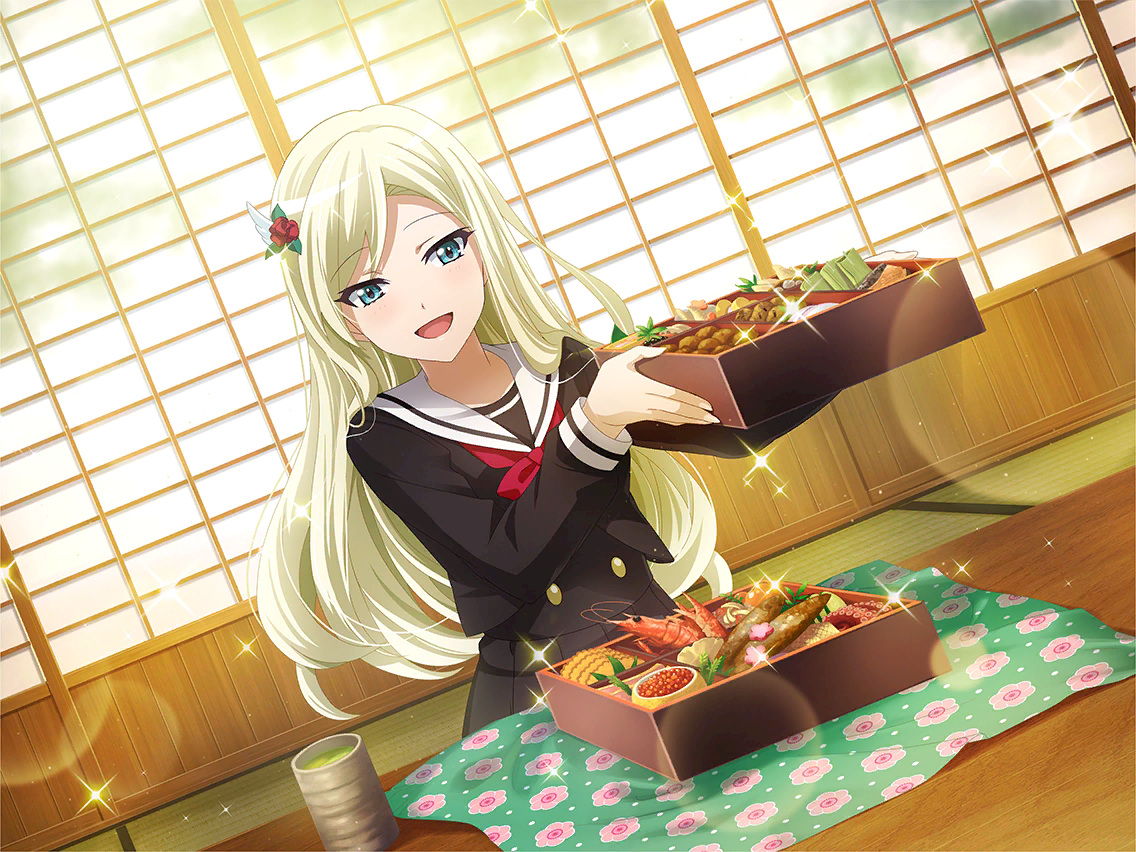 선물로 받은 주문 도시락. 찬합 속을 들여다보니 너무나도 호화로운 내용물에 후미의 마음도 들뜬다. [모두들 기뻐하겠지. 빨리 점심시간이 되었으면...] 이 계란말이는 꼭 먹어야지. 몰래 마음을 정한 후미였다. |
