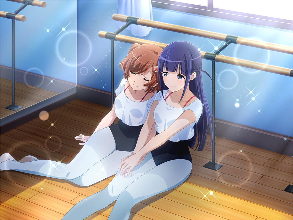 오늘은 마히루와 카렌이 문단속 당번. 둘이서 스트레칭을 끝내고 친구들을 기다린다. 「마히루는 햇님처럼 따스해.」 잠깐만 쉬려고 했는데 카렌은 결국 꾸벅꾸벅. 친구들이 오기 전까지 잠시만 자게 해 주자. |