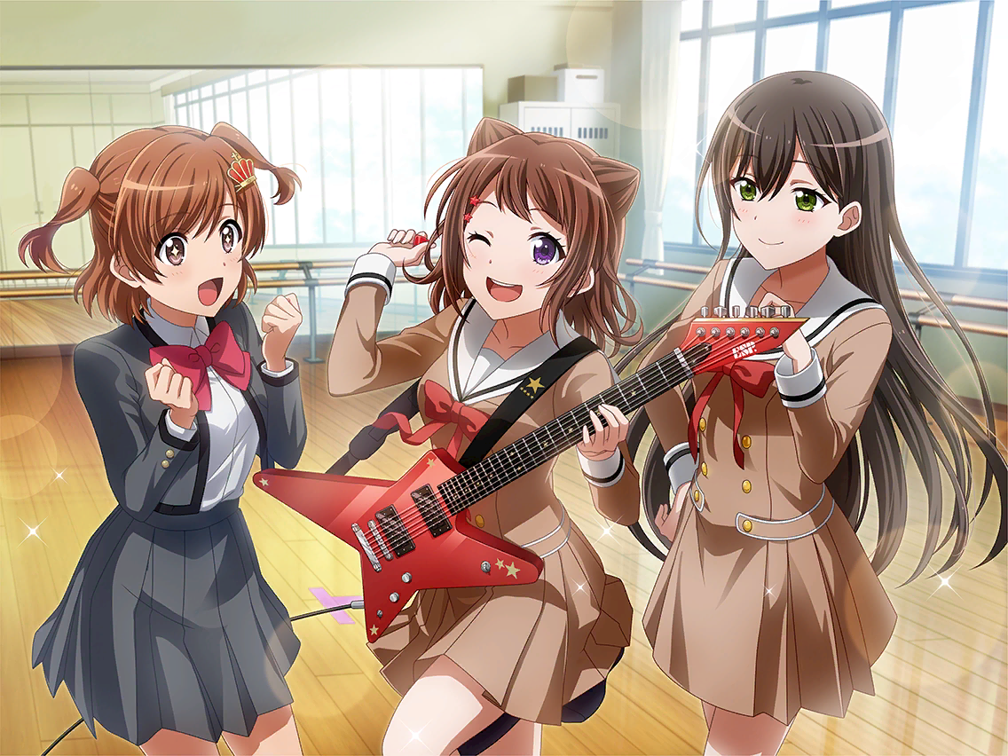 [흐흐~응, 왜냐면 지금의 나는 카렌의 스승인걸!] 기타를 연주하며 카렌에게 시범을 보이는 카스미. 마침 자리에 있던 타에와의 세션이 시작되자 그것은 호흡이 맞는 연기처럼 보여서 카렌의 마음을 사로잡은 것이었다. |