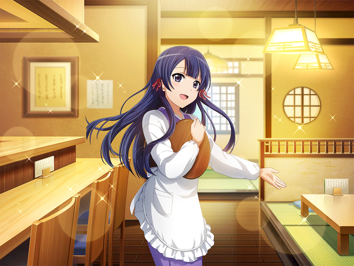 [다들, 이쪽으로 오세요] 린메이칸의 부원들을 본가인 [전통요리 토모에]로 초대한 타마오. 어떤 요리가 나올지 모두의 마음은 기대로 한가득! |