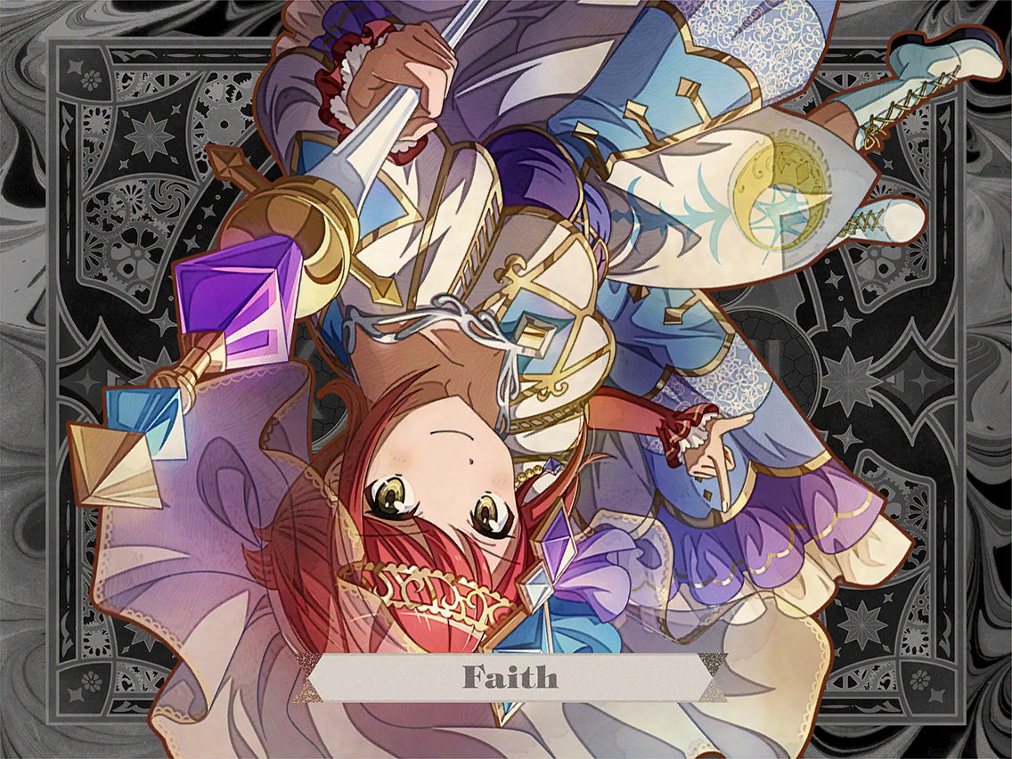 비스콘티 스포르차판 타로이기에 정보 없음. 그러나 희곡 [아르카나 아르카디아]에서 카노 미소라가 연기하는 [신앙]이 이 미지의 아르카나에 의미를 불어넣는다. |