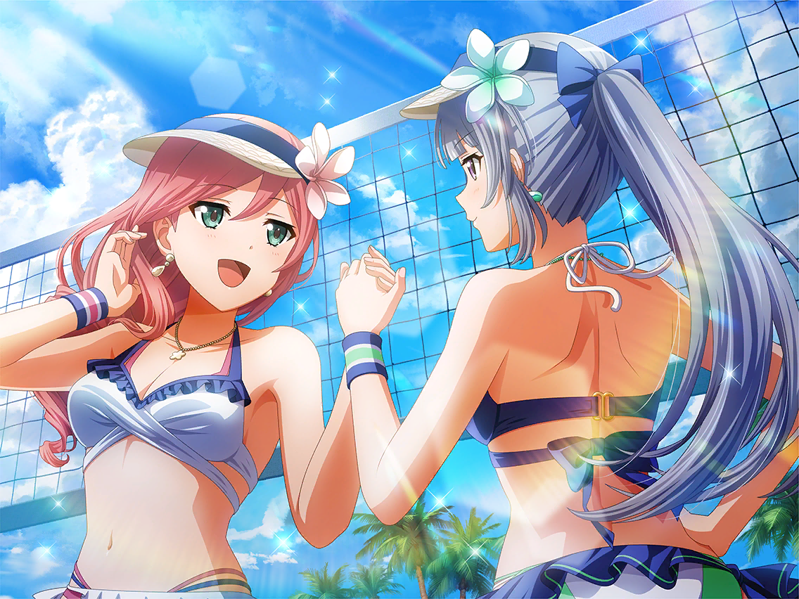[내 파트너는 너뿐이니까.] 진짜 모래사장에서 상연되는 비치발리볼을 테마로 한 무대 [BEACH!!]에서 페어로 연기하는 야치요와 아키라. 꼭 잡은 손은 역할을 넘어선 신뢰의 증거. |